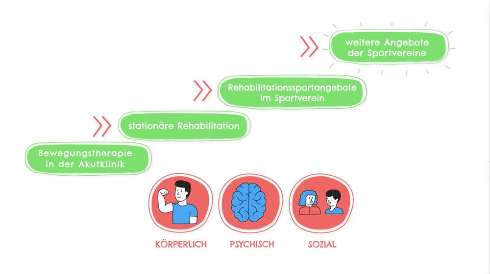 Vor diesem Hintergrund hat eine Expertengruppe des Deutschen Behindertensportverbands (DBS) als Starker Partner der Bewegungsoffensive „Bewegung gegen Krebs“ der Deutschen Krebshilfe, des Deutschen Olympischen Sportbundes und der Deutschen Sporthochschule Köln einheitliche und qualitativ hochwertige Lehr- und Lernmaterialien für die Aus- und Fortbildung von Übungsleiter*innen im Rehabilitationssport in der Krebsnachsorge konzipiert. Um nachhaltig die Strukturen zu verbessern, ist es jetzt von großer Bedeutung, dass die erstellten Materialien flächendeckend verbreitet werden und Anwendung finden.